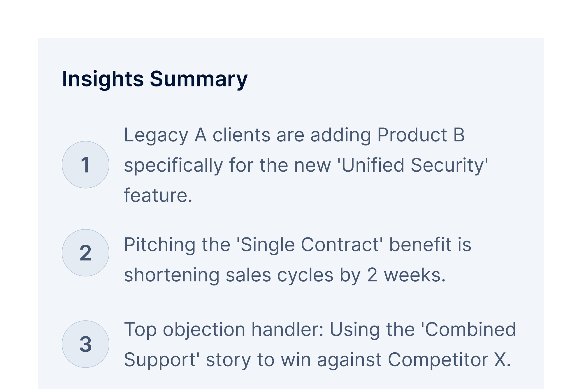 Turn integration into execution. After a merger, value is only realized when people can execute together. Post-merger integration prepares teams from both sides to sell, support, and deliver a unified offering, building confidence in the combined value before execution reaches customers.